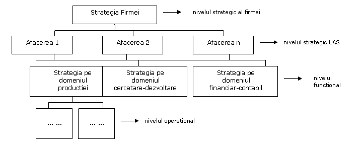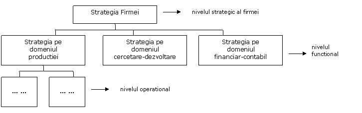 In cazul firmelor de mici dimensiuni, angajate intr-un singur domeniu de activitate, pot fi distinse trei niveluri strategice, si anume :