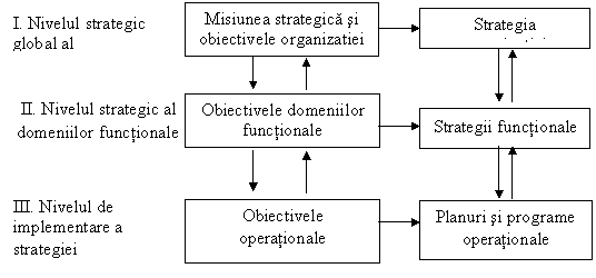 Figura nr. 2.1. Nivelurile ierarhice in cadrul firmei, obiectivele si strategiile corespunzatoare acestora