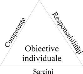 Intre obiectivele individuale, sarcinile, competentele si responsabilitatile circumscrise fiecarui post si functie trebuie sa existe o concordanta deplina, realizandu-se triunghiul de aur al organizarii. Prin aceasta se asigura premisele organizatorice necesare ca titularul postului sa-si poata realiza obiectivele ce-i revin.