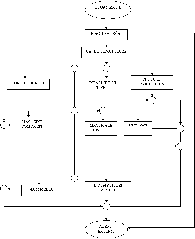 Comunicarea cu clientii externi ai firmei se efectueaza de Compartimentul Vanzari, utilizand diverse canale de comunicare :