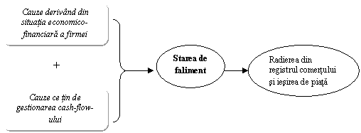 Sintetizat grafic, cauzele ce pot determina aparitia falimentului unei firme si iesirea ei de pe piata se prezinta astfel: