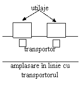 Pozitionarea liniilor in spatiu se face in functie de nevoile de alimentare, transfer si evacuare a acestora. In cazul respectarii succesiunii operatiilor, ordinea este stabilita de transportorul ce asigura legaturile intre linii. Utilajele se pot amplasa pe linie, paralel, transversal sau in linie cu transportorul, iar o linie poate sa aiba unul sau doua randuri de utilaje (figura 6.6).