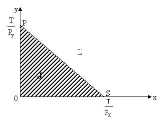 Domeniul de optiune al cumparatorului este triunghiul OPS. Orice punct, de exemplu J, este posibil pe cand punctul L este inaccesibil: