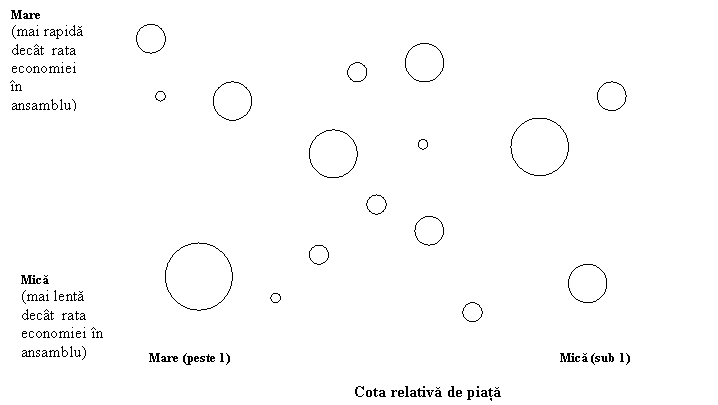 Matricea Boston Consulting Group (BCG) a fost elaborata de una dintre cele mai prestigioase firme de consultanta in management, si anume Boston Consulting Group. In cadrul acestui model dimensiunea valorii domeniului de activitate este exprimata prin rata de crestere a segmentului de activitate, iar competenta firmei prin cota sa relativa de piata pe acel segment.
