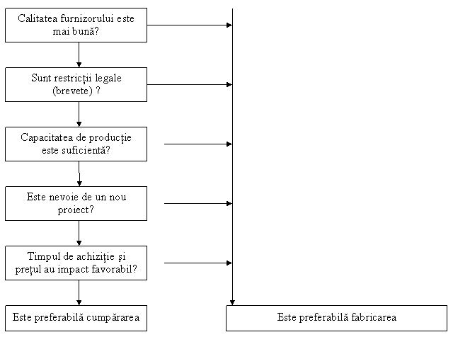 Decizia cumparare/fabricatie. Uneori este avantajos ca anumite repere sau subansamble, sa fie cumparate din exterior, alteori este avantajos ca ele sa fie fabricate in interiorul intreprinderii .