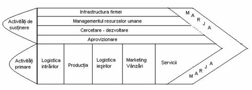 Infrastructura organizatiei este singura dintre activitatile de sustinere care sprijina intregul lant al "activitatilor - valoare" si nu activitati individuale. Din aceasta categorie fac parte activitati precum managementul general al organizatiei, planificarea financiara, contabilitatea, activitatea juridica, managementul calitatii. Constituind, intr-un fel, o 'suprafunctie' a organizatiei, intrucat contine activitati implicate profund in desfasurarea tuturor celorlalte activitati ale acesteia, categoria 'Infrastructura organizatiei' poate constitui sursa unor avantaje competitive semnificative. Astfel, practicarea unui management general dinamic, modern, bazat pe o viziune strategica temeinic fundamentata si corect aplicata poate asigura cresterea semnificativa a performantelor economico-financiare si imbunatatirea pozitiei competitive a acesteia. Existenta unui sistem informational pentru conducere, riguros construit, care functioneaza aproape 'in timp real', permite identificarea operativa a surselor de reducere a costurilor si, deci, de dobandire a avantajului competitiv etc.