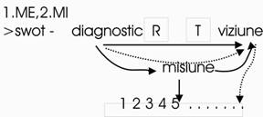 1.SWOT > 2.DIAGNOSTIC > 3.VIZIUNE > 4.MISIUNE > 5.sist de ob. strategice