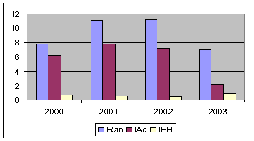 Rotatia activelor nete masoara eficienta activitatii interne. Observam ca in ani 2001 si 2002 acest indicator a avut o valoare mai mare ceea ce demonstreaza ca utilizarea capitalului a fost mai eficienta, deci capitalul a fost mai bine folosit decat in anii 2000 si 2003. Scaderea din ultimul an analizat al rotatiei activelor nete se datoreaza si scaderii cifrei de afaceri (tabelul 6) .