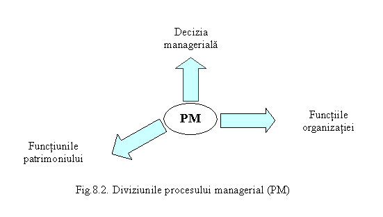 Particularizand, se poate afirma ca procesul managerial este ansamblul operatiunilor de relationare prin care managementul orienteaza si sustine organizatia si patrimoniul sistemului institutiei/firmei, in contextul schimbarilor permanente ale mediului, in asa fel incat sa se obtina o valoare adaugata cat mai mare la trecerea si transformarea resurselor in produse .
