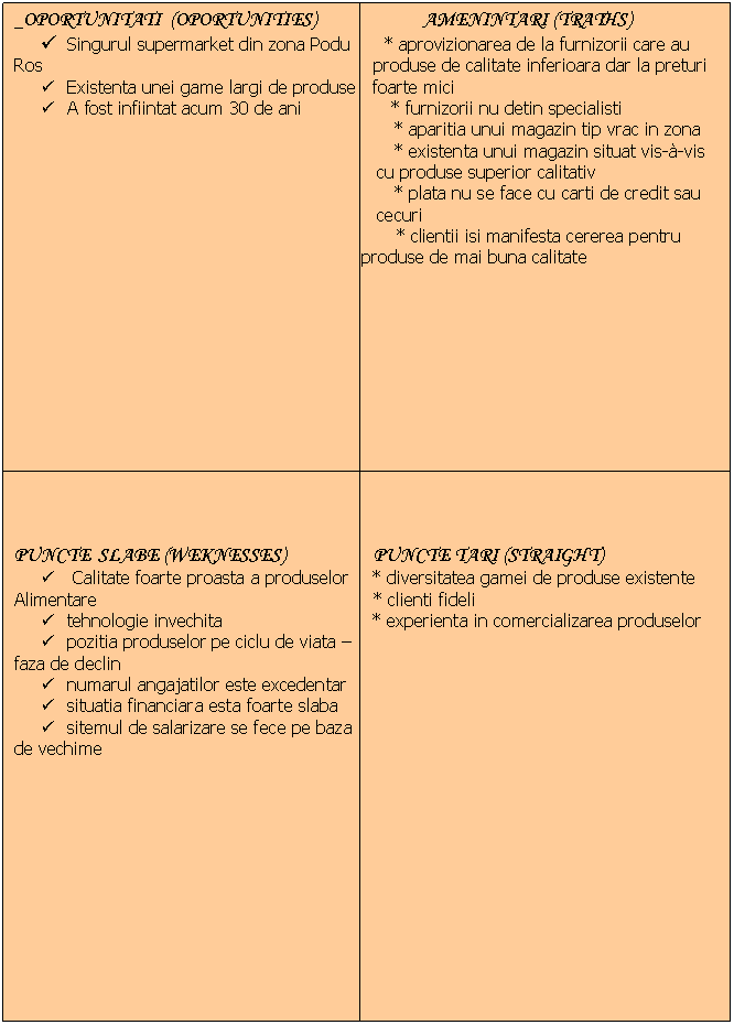 Firma care ne-am decis sa o avem in vedere este supermarketul "MERCUR"-o fosta alimentara, care pana in 1994 apartinea statului. In acel an s-au scos la licitatie numai 49% din actiuni, celelalte 51%apartinand in continuare statului roman. Cele 49% din actiuni au fost cumparate de fostii directori ai societatii alimentare, fiind impartite in 3 parti egale. Statul ramane totusi actionarul majoritar, iar deciile care au fost luate au depins de acest vot. In 1998, au fost modernizate cantarele si casele de marcat, insa vitrinele frigorifice si rafturile au omise;deasemenea au fost inlocuite si geamurile cu termopan iar peste ciment s-a pus gresie. Magazinul functioneaza cu program non-stop si detine sistem de alarma.Plata se face normal si pe baz tichetelor de masa, insa nu se accepta cartile de credit(magazinul nu detine un astfel de aparat).