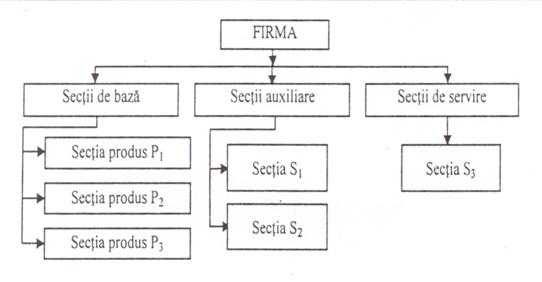 tipul de produs, caracterizat prin faptul ca organizarea sectiilor de productie se face dupa principiul obiectului de fabricat, fiecare sectie asigurand fabricarea unui produs sau a unor parti ale acestuia. Se recomanda pentru productia de serie mare (Fig. 2.7.).