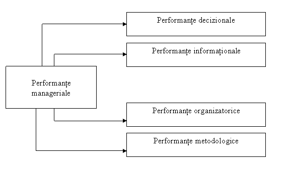 Dat fiind faptul ca sistemul de management al organizatiei poate fi abordat prin prisma subsistemelor (sau componentelor) metodologic, decizional, informational si organizatoric, tot asa performantele manageriale pot fi delimitate in patru categorii (vezi figura nr. 5):