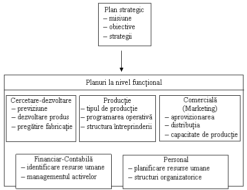 Planificarea functionala reprezinta un proces de decizie zilnic la nivelul operational al intreprinderii. Daca planificarea strategica se concentreaza spre "a face ceea ce trebuie facut" (eficacitate), planificarea functionala se concentreaza spre: "a face bine ceea ce faci" (eficienta). In figura 6.1 sunt prezentate legaturile dintre planul strategic si planul la nivel functional.