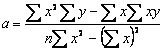 x - valorile variabilei independente y - valorile variabilei dependente n - numarul perioadelor de date