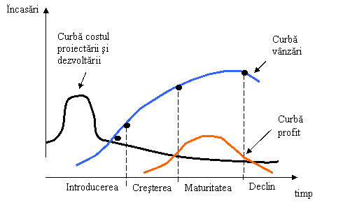 Dupa ce un produs a fost proiectat si dezvoltat, acesta intra pe piata si parcurge o serie de etape ce se cunosc sub numele de Ciclul de viata al produsului (figura 5), corelat cu nivelul de incasari datorate vanzarii produsului.
