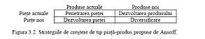 Ansoff a propus o matrice a alternativelor piata-produs, care a devenit in scurt timp o forma utilizata pe scara larga. In termeni de baza, matricea ofera urmatoarele alternative (fig.2):