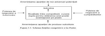 influente(forte) majore asupra abilitatii firmei de a concura, cuprinzand nu numai competitorii existenti, dar si adversarii economici potentiali, amenintarea cu produse substitute, puterea de negociere a cumparatorilor si a furnizorilor.