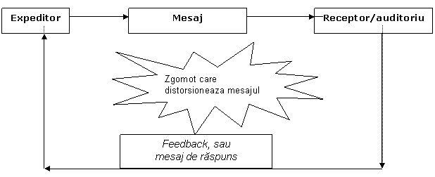 Altfel spus, orice mesaj are un expeditor si un receptor/auditoriu. Expeditorul codifica mesajul si il transmite folosind un mijloc de comunicare corespunzator. Receptorul primeste mesajul si il decodifica. Ideal este ca mesajul decodificat sa fie identic cu mesajul codificat.