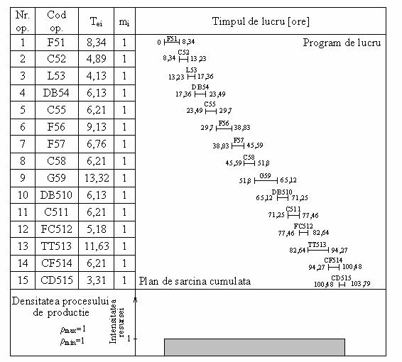 Corespunzator celor trei repere (P1 , P3, P5) , numarul de masini-unelte si gradul de incarcare se prezinta in tabelul 1.