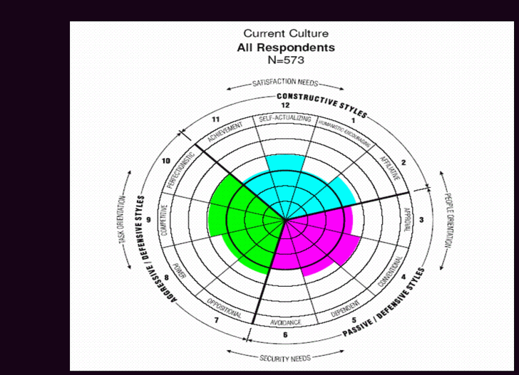 Studiul, amintit anterior a analizat relatia dintre cultura si diferitele forme de angajament. Rezultatele au aratat ca organizatia cu o cultura constructiva incurajeaza angajamentul membrilor iar oamenii lucreaza acolo pentru ca asta isi doresc, in timp ce in organizatiile care au culturi mai defensive oamenii raman pentru au atins un anumit nivel de comoditate.