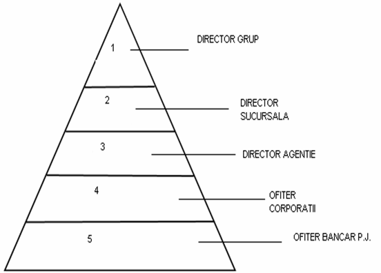Ierarhice: Director Agentie / Sucursala; Manager Departament Relatii cu Clientii; Functionale Directia Dezvoltarea activitarii; Directia Prelucrarea Tranzactiilor. |