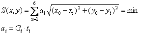 Problema care se pune este gasirea unei aproximatii. Se adopta pentru aceasta prima aproximatie, coordonatele centrului de gravitate a sistemului care se calculeaza cu relatiile:
