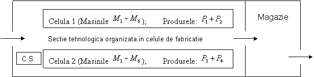 c) organizarea in 2 celule, fiecare fabricand cate 2 produse.