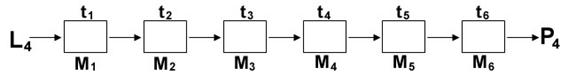 Se va considera ca cele 4 produse se realizeaza pe 6 categorii de utilaje (masini) si se vor lua in considerare timpii de prelucrare din tabelul urmator: