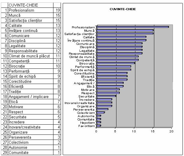 Analiza informatiilor evidentiaza accentul pus pe ceea ce se intampla la posturile de munca, si o preocupare mai redusa fata de oameni si problemele lor, iar angajatii considera organizatia ca fiind un loc distinct de viata lor privata, unde sunt tratati dupa contributia lor la realizarea obiectivelor organizatiei (abordare profesionala).