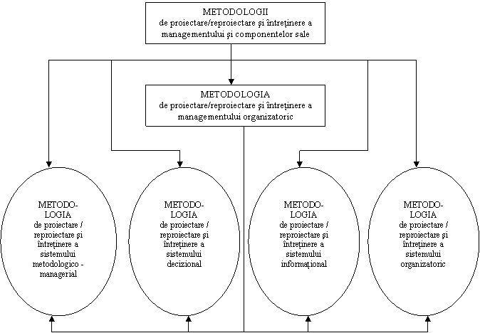 In al treilea rand, reproiectarea subsistemului metodologico-managerial implica elaborarea unor metodologii complexe de analiza si reproiectare a celorlalte componente manageriale, respectiv componentele decizionala, informationala si organizatorica. Toate acestea sunt abordate in contextul metodologiei globale de proiectare reproiectare a managementului organizatiei.