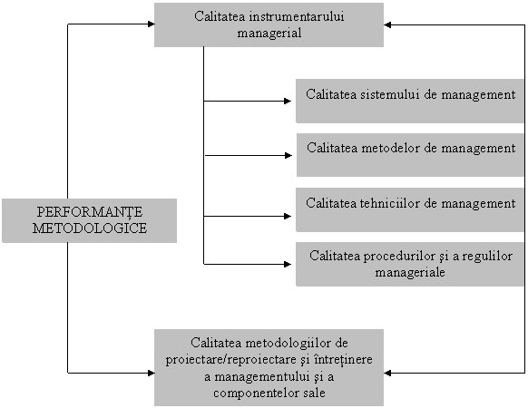 Calitatea metodelor de management Calitatea instrumentarului managerial PERFORMANTE METODOLOGICE Calitatea sistemului de management Calitatea tehniciilor de management Calitatea procedurilor si a regulilor manageriale Calitatea metodologiilor de
