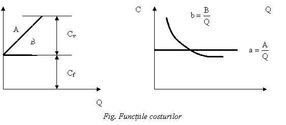 Pe baza relatiilor dintre cele trei marimi, respectiv veniturile din vanzarea productiei, costurile fixe si costurile variabile se determina pragul de rentabilitate al productiei. Pentru aceasta este nevoie sa se faca apel la functiile costurilor si veniturilor. Forma cea mai simpla a acestor functii si reprezentarea lor grafica este urmatoarea: