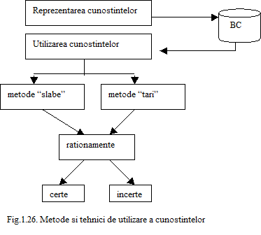 reprezentare in sensul ca posibilitatile de utilizare depind, in mod direct de structurile de reprezentare. Utilizarea cunostintelor poate fi interpretata drept un proces de aplicare a unui set de operatori definiti asupra structurilor de reprezentare a cunostintelor prin metode "slabe" si metode "tari".