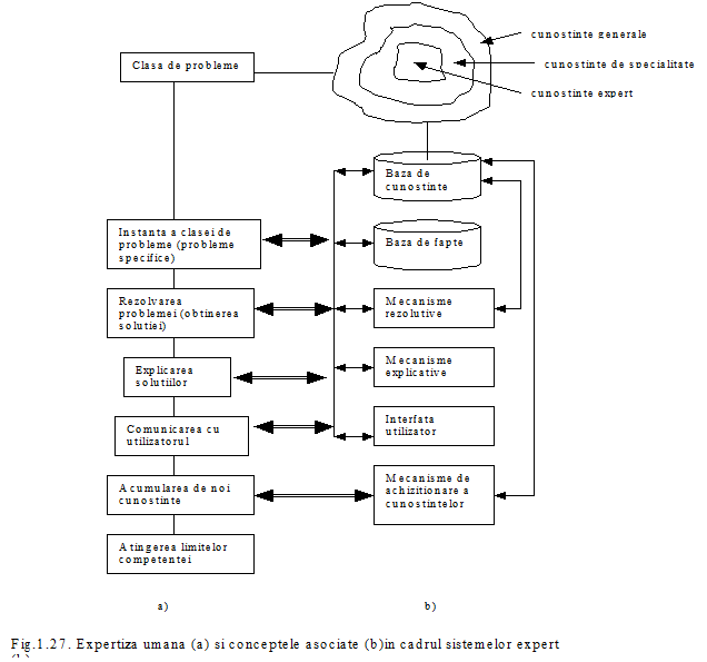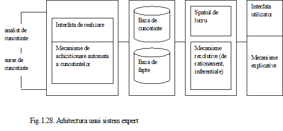 Caracteristicile si conceptele expertizei conduc spre arhitectura unui sistem expert (fig. 1.28) de unde rezulta componentele sale: