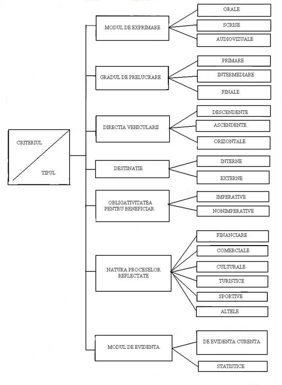 Tipologia circuitelor informationale este structurata dupa urmatoarele criterii: