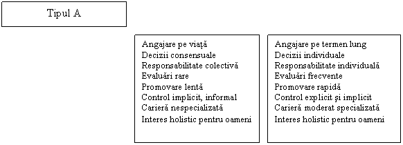 Z Angajare de scurta durata Decizii individuale Responsabilitate individuala Evaluari frecvente Promovare rapida Control explicit, formal Cariera specializata Interes segmentat pentru oameni Tipul