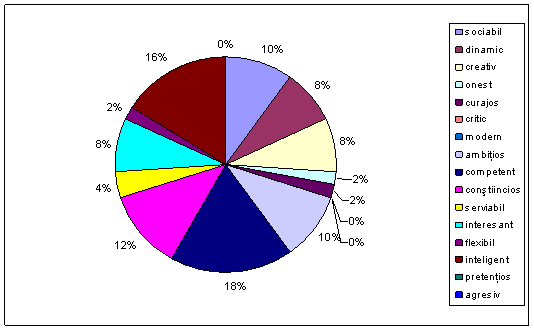 5. Un angajat trebuie sa posede anumite calitati. Cum trebuie sa fie angajatul ideal (alegeti doar cinci atribute pe care le considerati cele mai importante)?