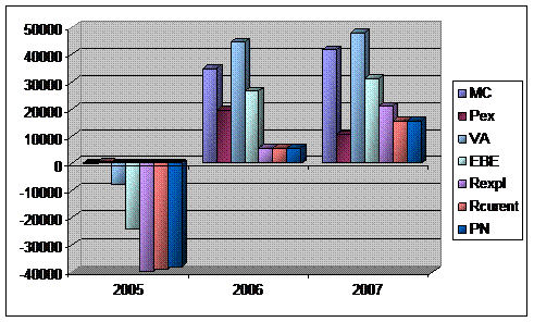 Rezultatul Net in 2005 inregistreaza o valoare negativa, datorita unor cheltuieli legate de operatiile de gestiune, de capital.Rezultatul Net in exercitiile financiare 2006,2007 ia valori pozitive,RN=RC, adica unitatea n-a avut venituri sau cheltuieli exceptionale.