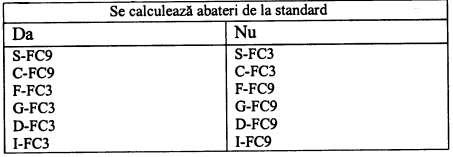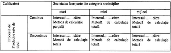 Stabilirea metodei de calculatie in functie de interesul calcularii unor abateri de la standard se prezinta in tabelul de mai jos: