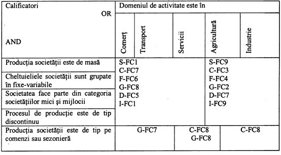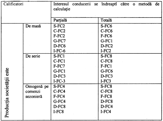 Tabel 2.3. Tabela decizionala pentru stabilirea metodei dupa interesul conducerii si productie :