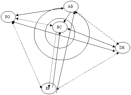 7. triunghiul respingerilor (indivizii A, B, C, se resping reciproc);