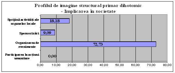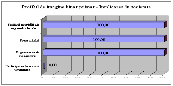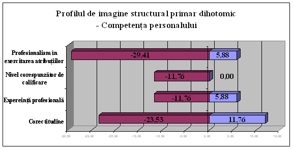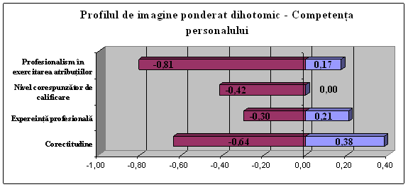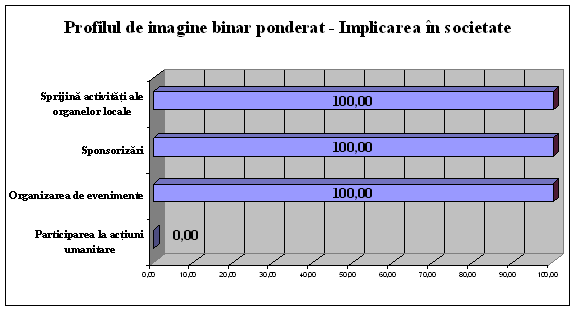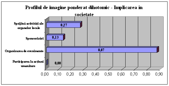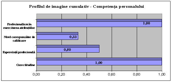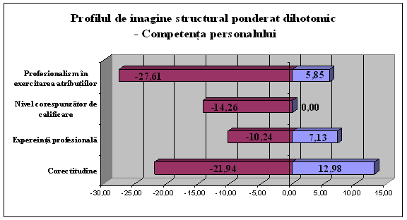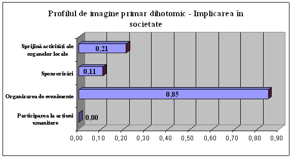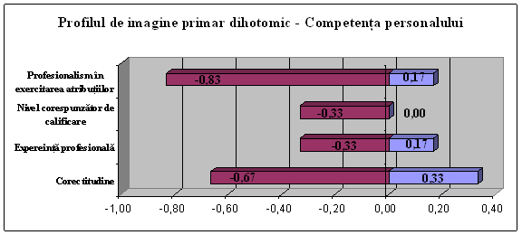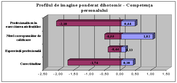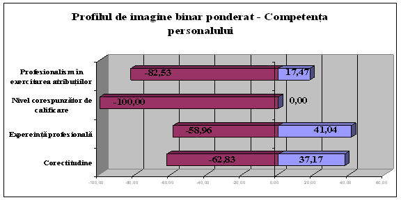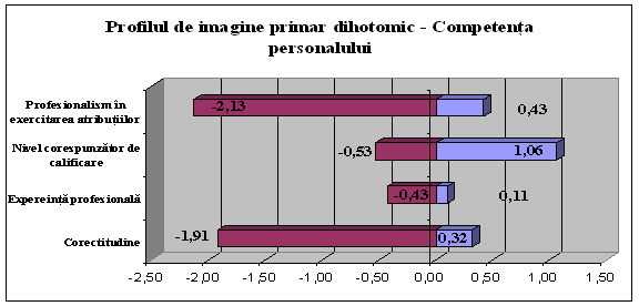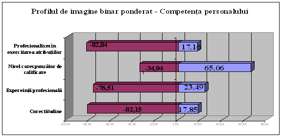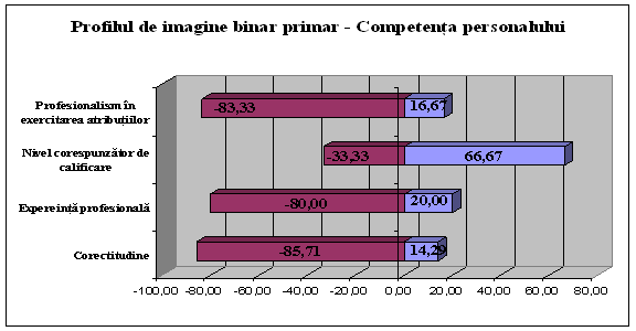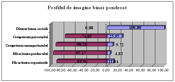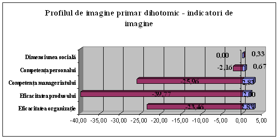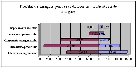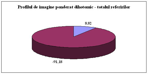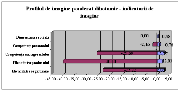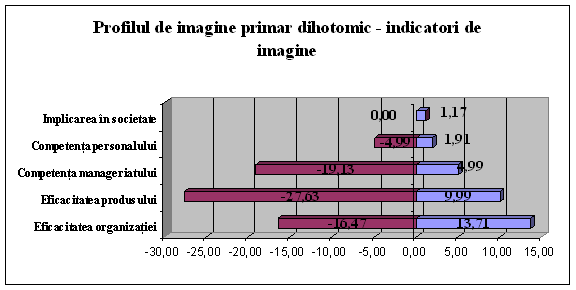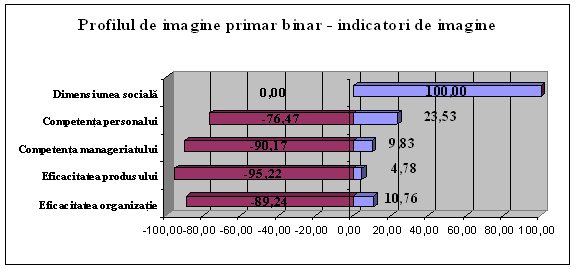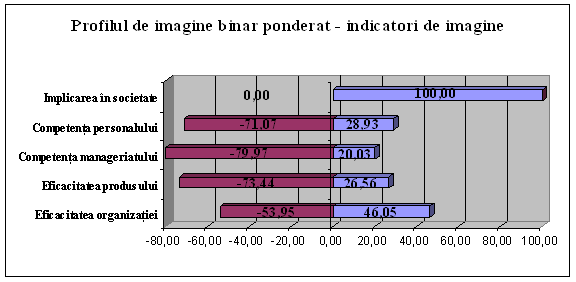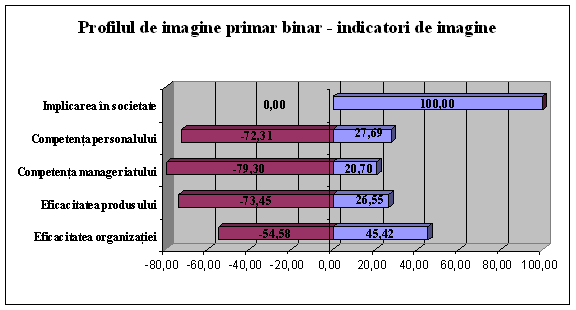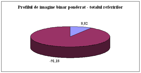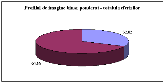 In cazul profilului de imagine binar putem observa ca acesti subindicatori au un caracter al imaginii preponderent pozitiv, respectiv puternic pozitiv. Totodata, este de mentionat faptul ca au un scor de impact important (circa 3%). Analizand tot profilul binar putem observa ca primul indicator are un caracter usor negativ.