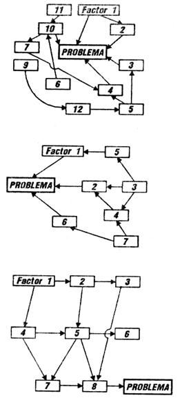 - cu punct central (fig. 17. a) - problema analizata este plasata in centru, in jurul ei fiind plasati factorii de influenta;