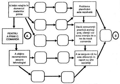 Diagrama deciziilor de actiune - realizata pe orizontala sau verticala - este similara unei scheme-bloc a unui program pentru calculator, intocmirea ei rezumandu-se la a trasa drumul ideal ce trebuie parcurs pentru ca pornind de la situatia A sa se atinga obiectivul B (fig. 21.); se evidentiaza in acest mod inclusiv situatiile nedorite ca si modurile de a le evita.