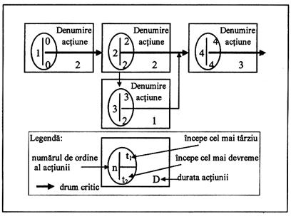 - determinarea, in functie de termenele stabilite, a momentelor in care trebuie incepute actiunile, cel mai devreme (t1) si cel mai tarziu (t2);