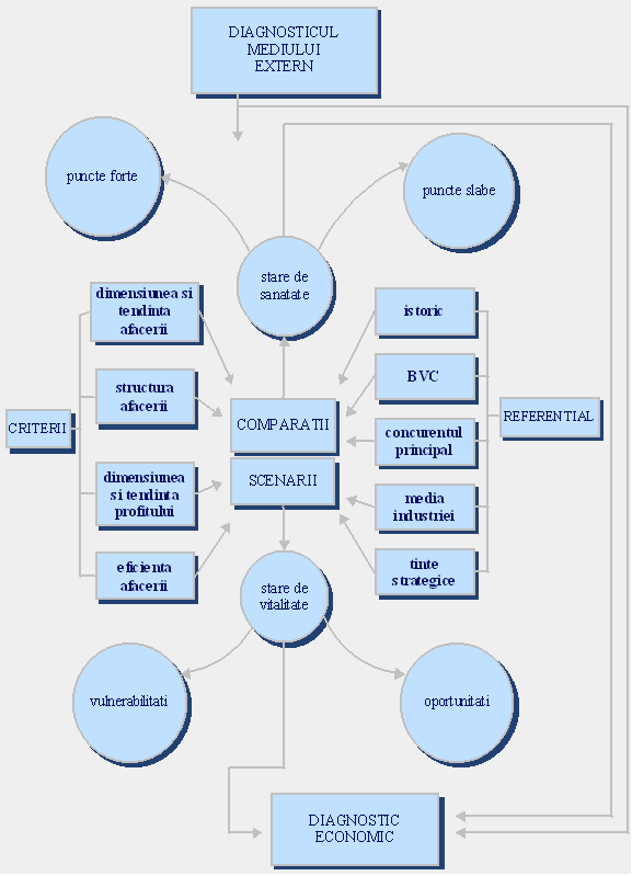 urmareste determinarea starii de vitalitate a intreprinderii prin raportare la dinamica mediului extern;