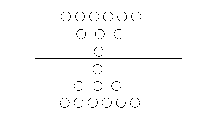 membrii echipei sunt impartiti in 2 grupuri; fiecare participant fiind asezat in cadrul unei structuri piramidale, dupa modelul: