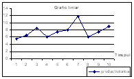Graficul liniar, este utilizat pentru evidentierea variatiei in timp a elementelor analizate. Pe abscisa se mentioneaza perioada de timp luata in considerare, iar pe ordonata, marimea elementelor (fig. 10.2).
