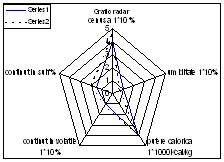 Pe fiecare raza se marcheaza marimea elementelor, astfel incat valoarea cea mai mica sa corespunda cu centrul cercului (fig. 10.4). Graficul radar poate fi utilizat pentru analiza comparativa a calitatii produselor, activitatilor, proceselor, luand in considerare mai multe caracteristici (criterii).