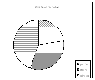 Graficul circular, permite evidentierea producerii diferitelor elemente in cadrul fenomenului studiat. Pentru o reprezentare corecta, unghiurile sectoarelor de cerc delimitate trebuie sa fie corelate ponderile elementelor respective (fig. 10.3). Acest tip de grafic poate fi utilizat pentru analiza diferitelor categorii de defecte, evidentierea ponderii factorilor care determina un anumit nivel al calitatii produselor, analiza compozitiei chimice a produselor etc.